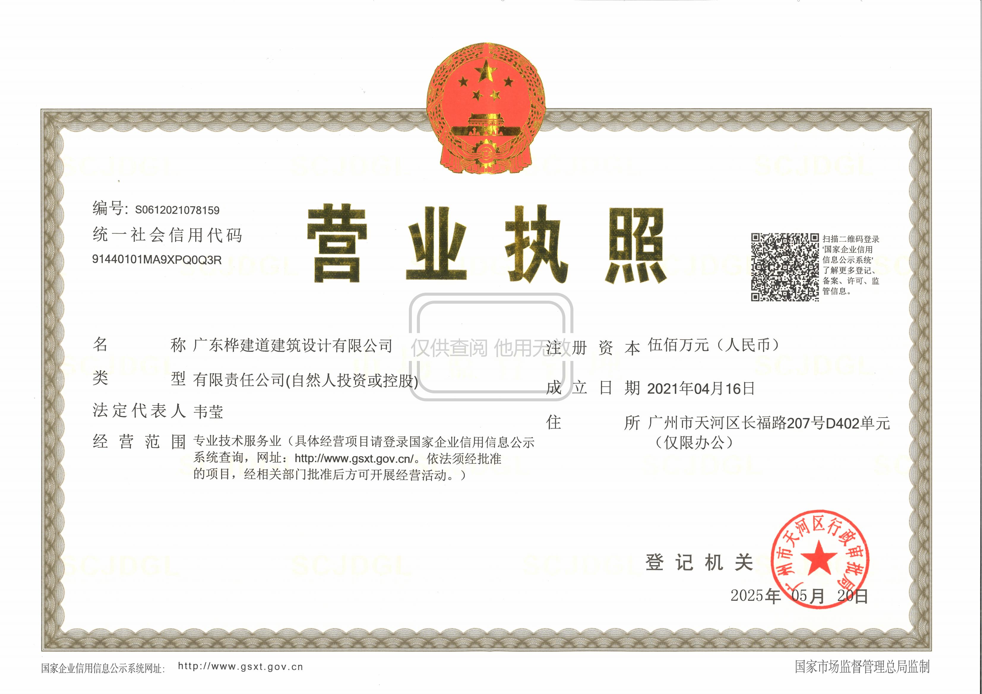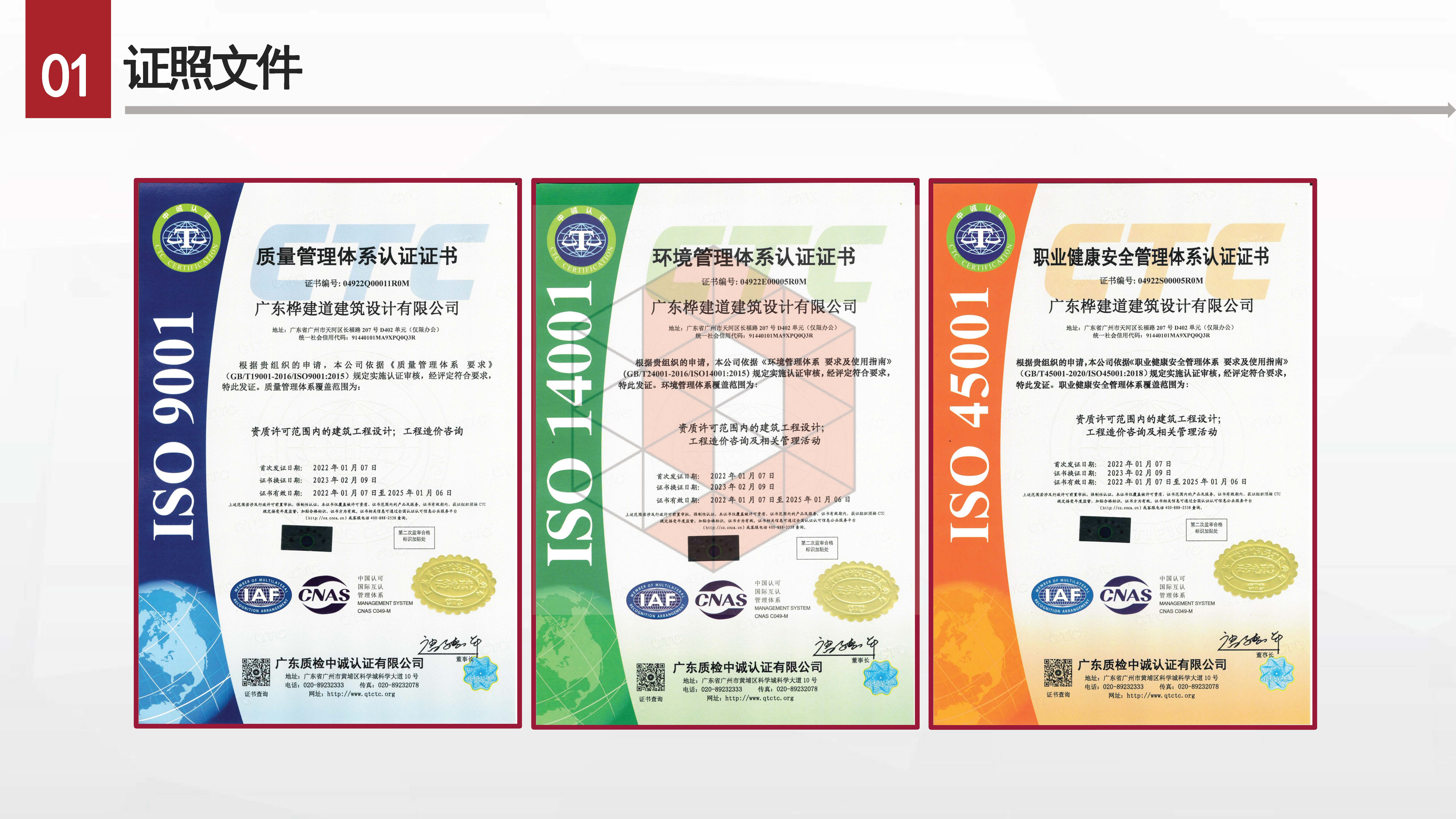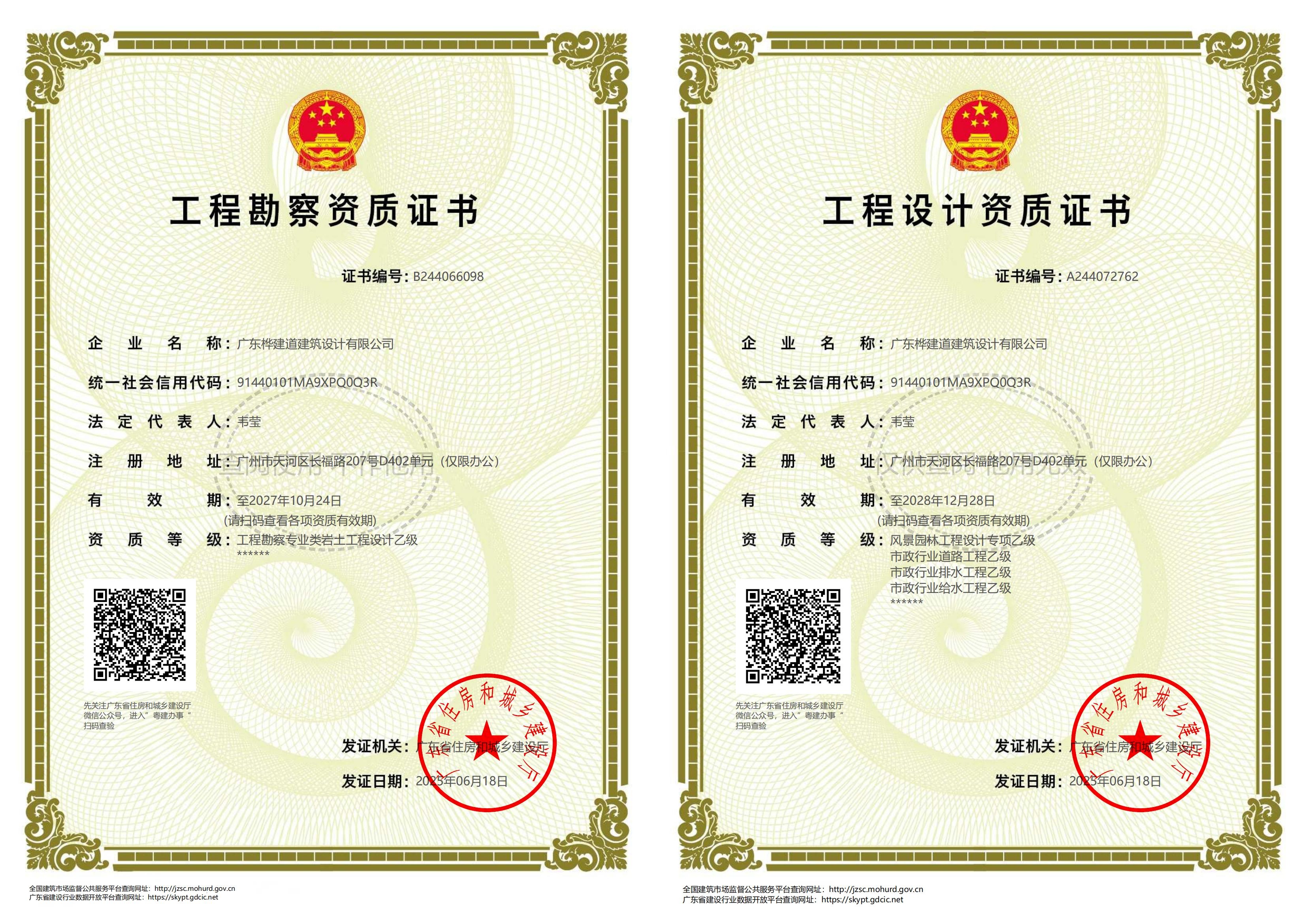 乘着中国式现代化建设和粤港澳大湾区城市群发展的强劲东风,广东桦建道建筑设计有限公司于2021年在花城广州扬帆起航。公司注册资本2000万元,拥有注册建筑师、规划设计师和专业管理人员近百人,先后取得国家授予的建筑行业建筑工程设计甲级、工程勘察类岩土工程设计乙级、市政行业工程设计乙级、一类施工图设计文件审查等专业资质,通过了ISO9001质量管理体系、ISO14001环境管理体系、ISO45001职业健康安全管理体系认证,获得了“守合同重信用企业”称号。